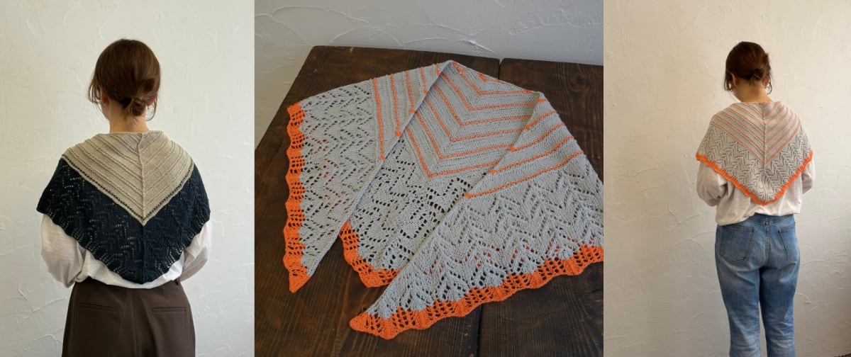 繊細なレース模様が美しいショール。 レース編みの部分と透けないマットな部分とのコントラストが綺麗です。 【セット内容】 ■A ・リネンラミーコットン 中細 col.109 ×2 ・リネンラミーコットン 中細 col.102 ×1 ・編み図 3枚 ■B ・リネンラミーコットン 中細 col.110 ×2 ・リネンラミーコットン 中細 col.111 ×1 ・編み図 3枚 【使用する針】 ・4号80cm輪針 ・3号80cm輪針 ・とじ針 【できあがり寸法】 ・幅:120cm ・丈:45.5cm 【難易度★★★】 ・主な技法:裏目の右上2目一度、中上5目一度、ねじり目 ■KITの難易度レベルについて 感じ方には個人差がありますので、あくまでも目安としてご参考ください。 ※外装パッケージはDARUMA製ではございません。 ※キットに、輪針、とじ針は入っておりません。 ※掲載している商品画像の色味はご利用のPC環境や撮影方法などにより、現物と異なる場合があります。 【離島への配送は承っておりません】 離島への配送には、佐川急便では別途中継料金が発生しますが、当店オンラインストアのシステムの都合上、ご注文時に自動計算されないため、大変申し訳ございませんが、離島への配送は承っておりません。 お届け先が離島のご注文をされた場合は、そのご注文はキャンセルとさせていただきますので、予めご了承くださいませ。