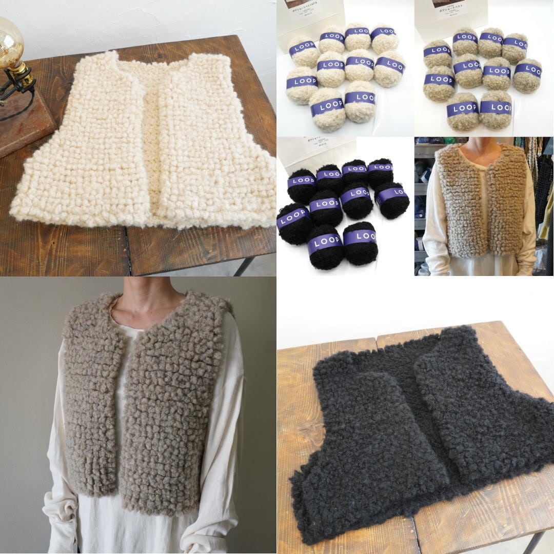 表情豊かなボリュームのある編み地が秋冬コーディネートのアクセントになる、ボアショートベスト。 ザクザク編めるのも嬉しいポイントです◎ 【セット内容】 ■A ・Loop サンドフォグ(col.9) ×10玉 ・編み図 1枚 ■B ・Loop ベージュ(col.7) ×10玉 ・編み図 1枚 ■C ・Loop ブラック(col.6) ×10玉 ・編み図 1枚 【使用する針】 ・7mmかぎ針 ・とじ針 【できあがり寸法】 ・胸囲:100cm ・着丈:45cm ・背肩幅:38cm 【難易度★★】 ・主な技法:鎖3目の引き抜きピコット・引き抜きはぎ・引き抜きとじ ■KITの難易度レベルについて 感じ方には個人差がありますので、あくまでも目安としてご参考ください。 ※外装パッケージはDARUMA製ではございません。 ※キットにかぎ針、とじ針は入っておりません。 ※掲載している商品画像の色味はご利用のPC環境や撮影方法などにより、現物と異なる場合があります。 【離島への配送は承っておりません】 離島への配送には、佐川急便では別途中継料金が発生しますが、当店オンラインストアのシステムの都合上、ご注文時に自動計算されないため、大変申し訳ございませんが、離島への配送は承っておりません。 お届け先が離島のご注文をされた場合は、そのご注文はキャンセルとさせていただきますので、予めご了承くださいませ。