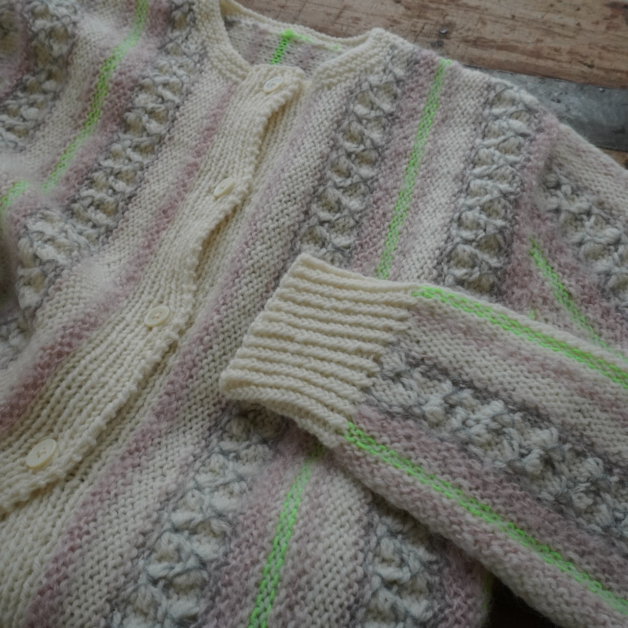 じっくり編める楽しい編み地模様のカーディガン。
