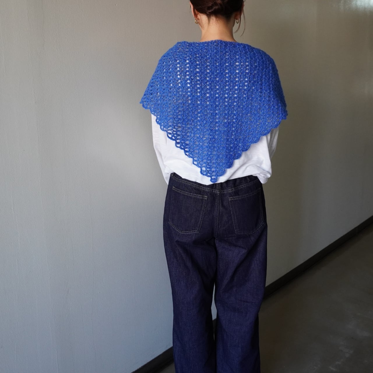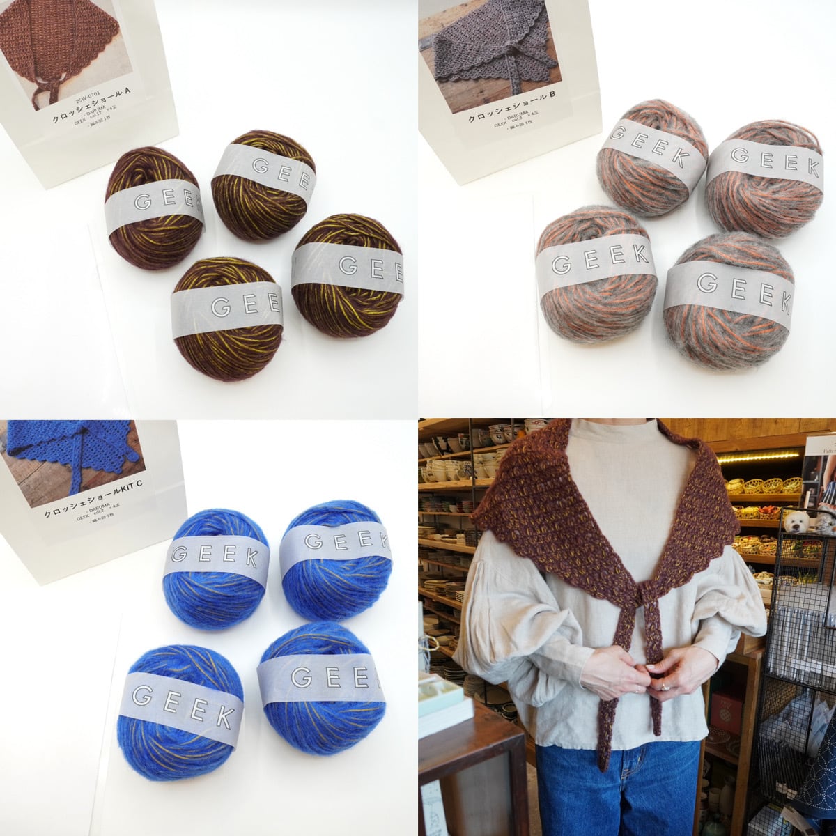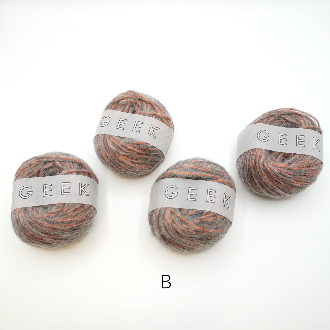 糸の芯と吹き出ているウールの繊維の色を変えた、ユニークな毛糸「GEEK」で編むショール。