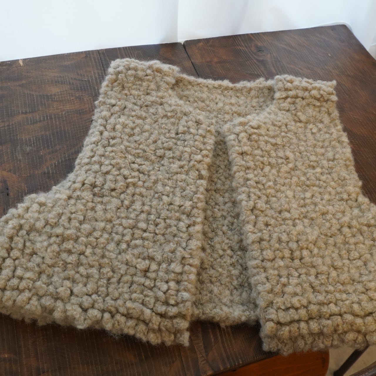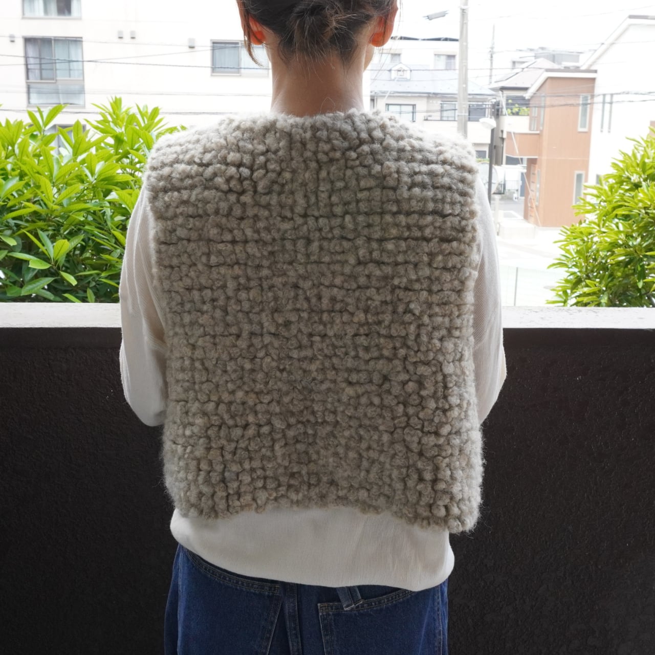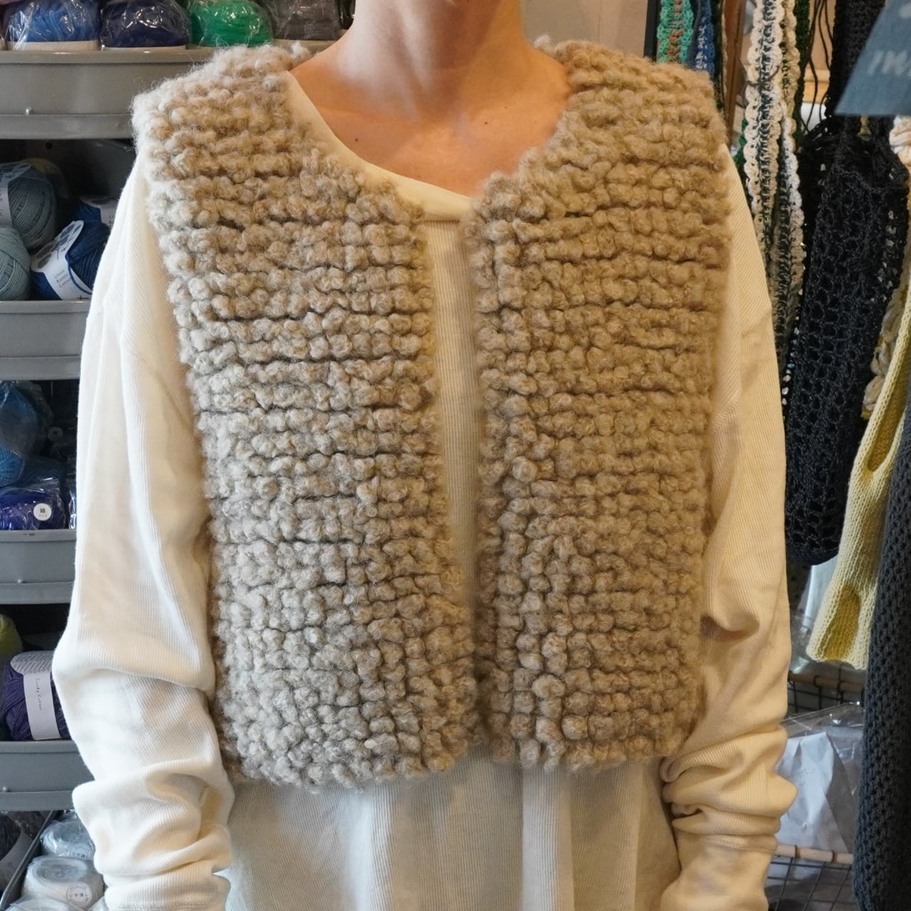 表情豊かなボリュームのある編み地が秋冬コーディネートのアクセントになる、ボアショートベスト。