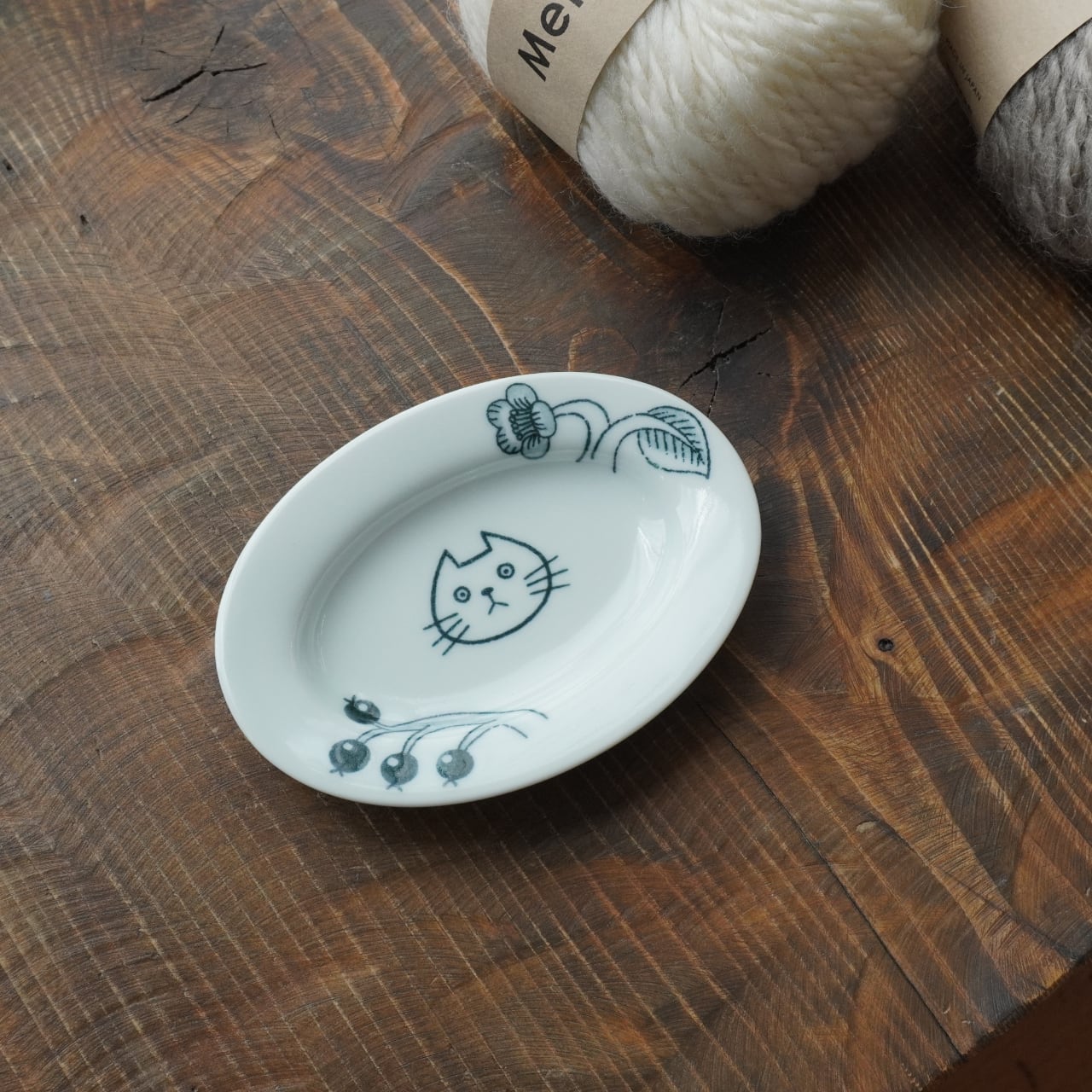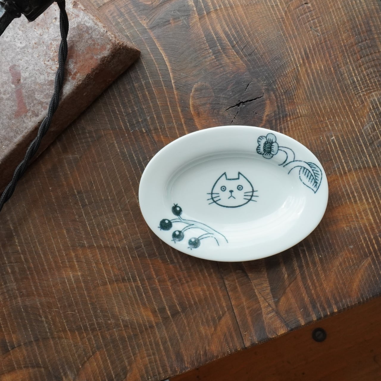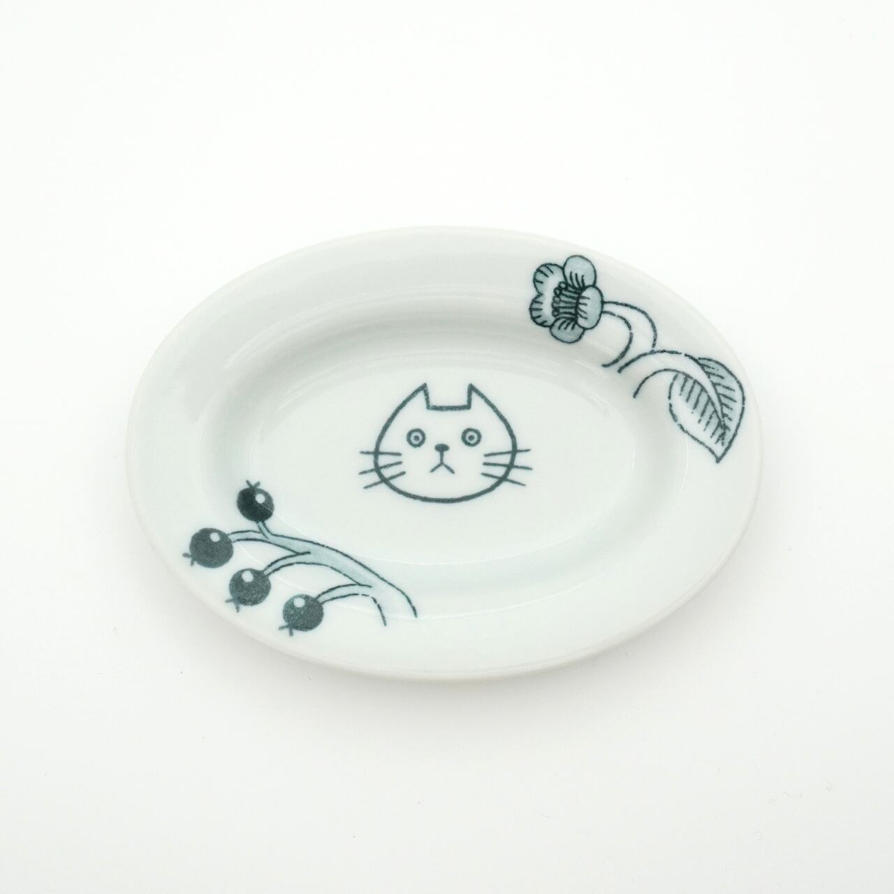 きょとん顔の猫の表情に癒される小さなプレート。