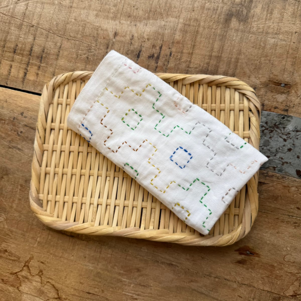 刺し子ふきんの作り方は、ふきんに付属の作り方ガイドをご参考ください。