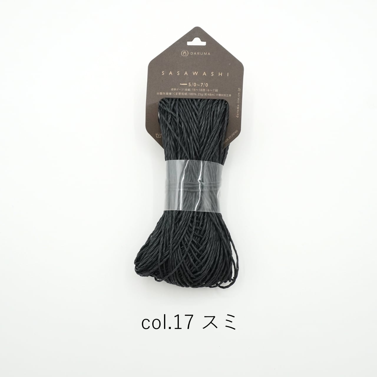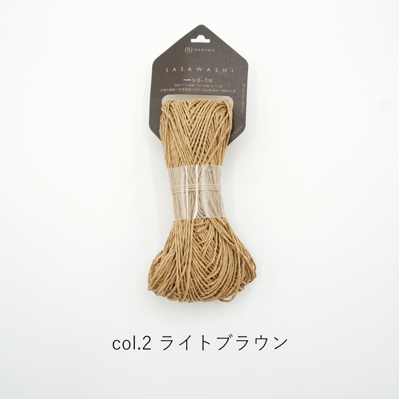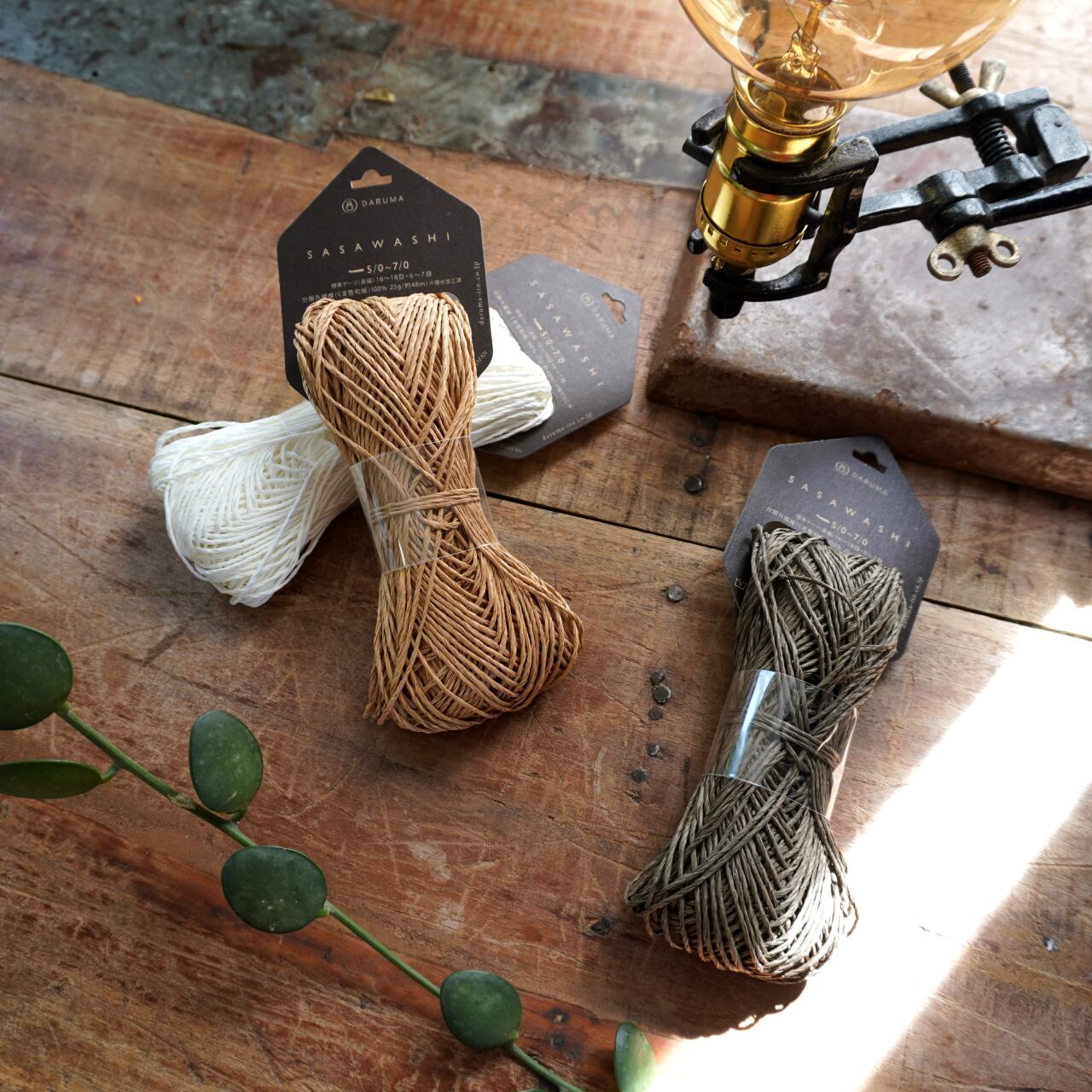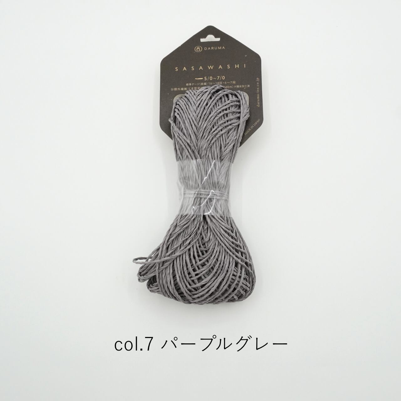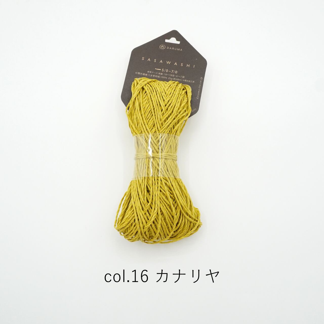 標高1000m以上にのみ群生する「くま笹」を和紙に漉き込んだ糸。天然の防臭、抗菌、UVカットが特徴で、帽子などを編むのにオススメ。撥水加工が施されており、水を弾いて、汚れにくいです。