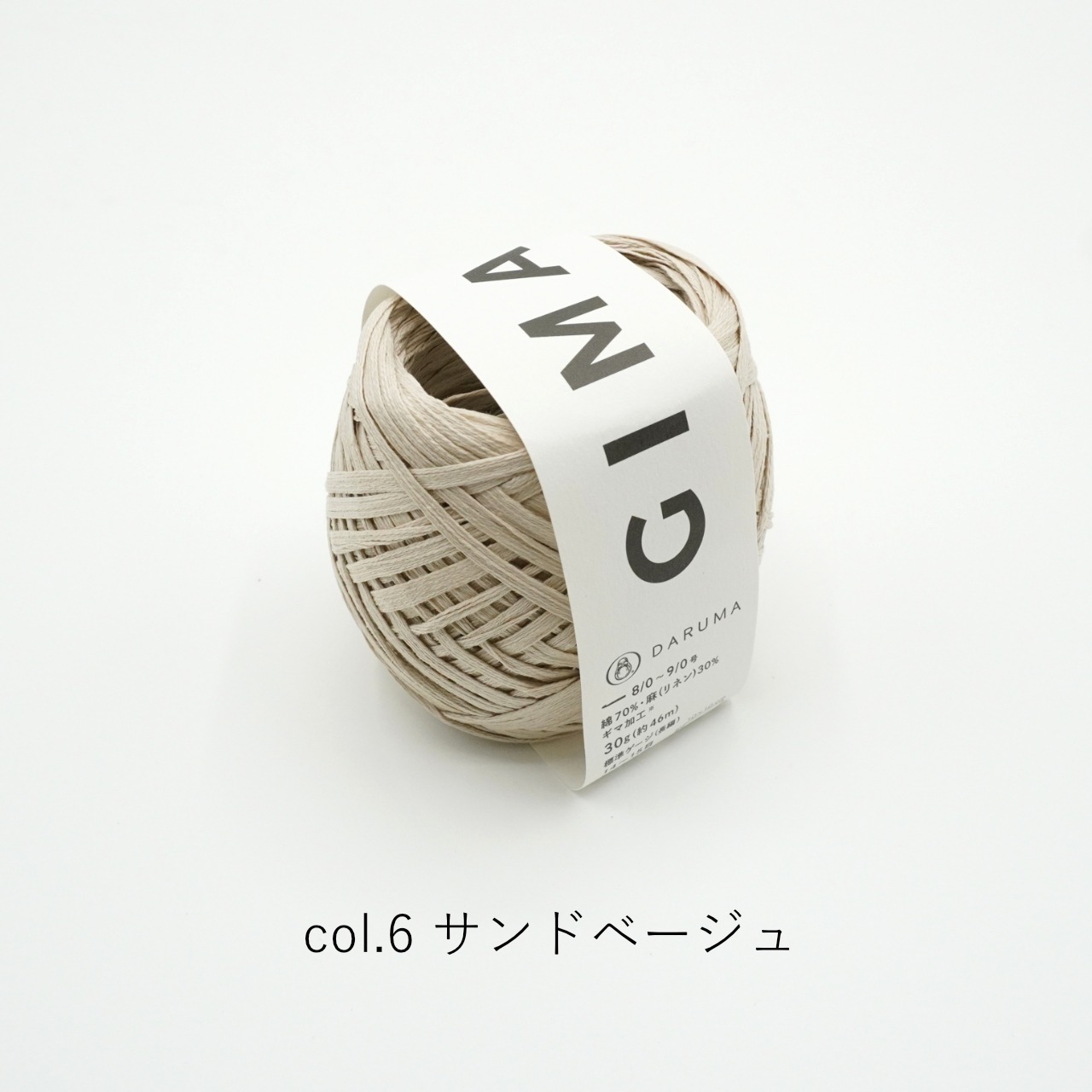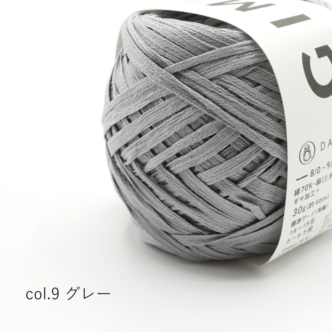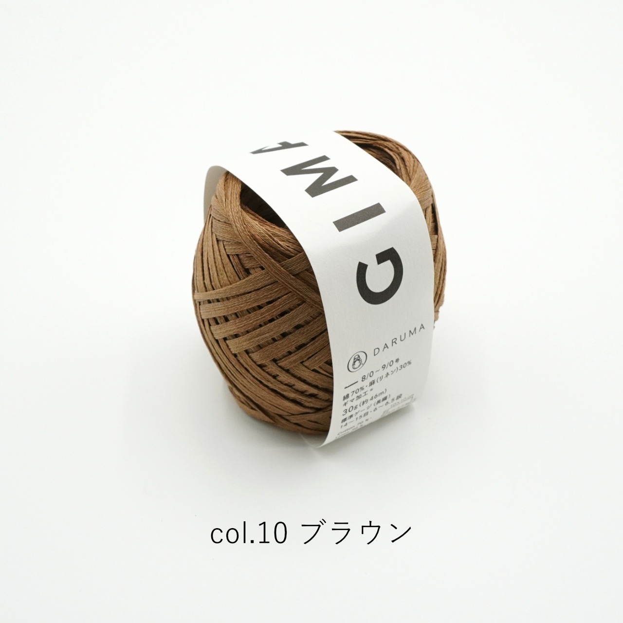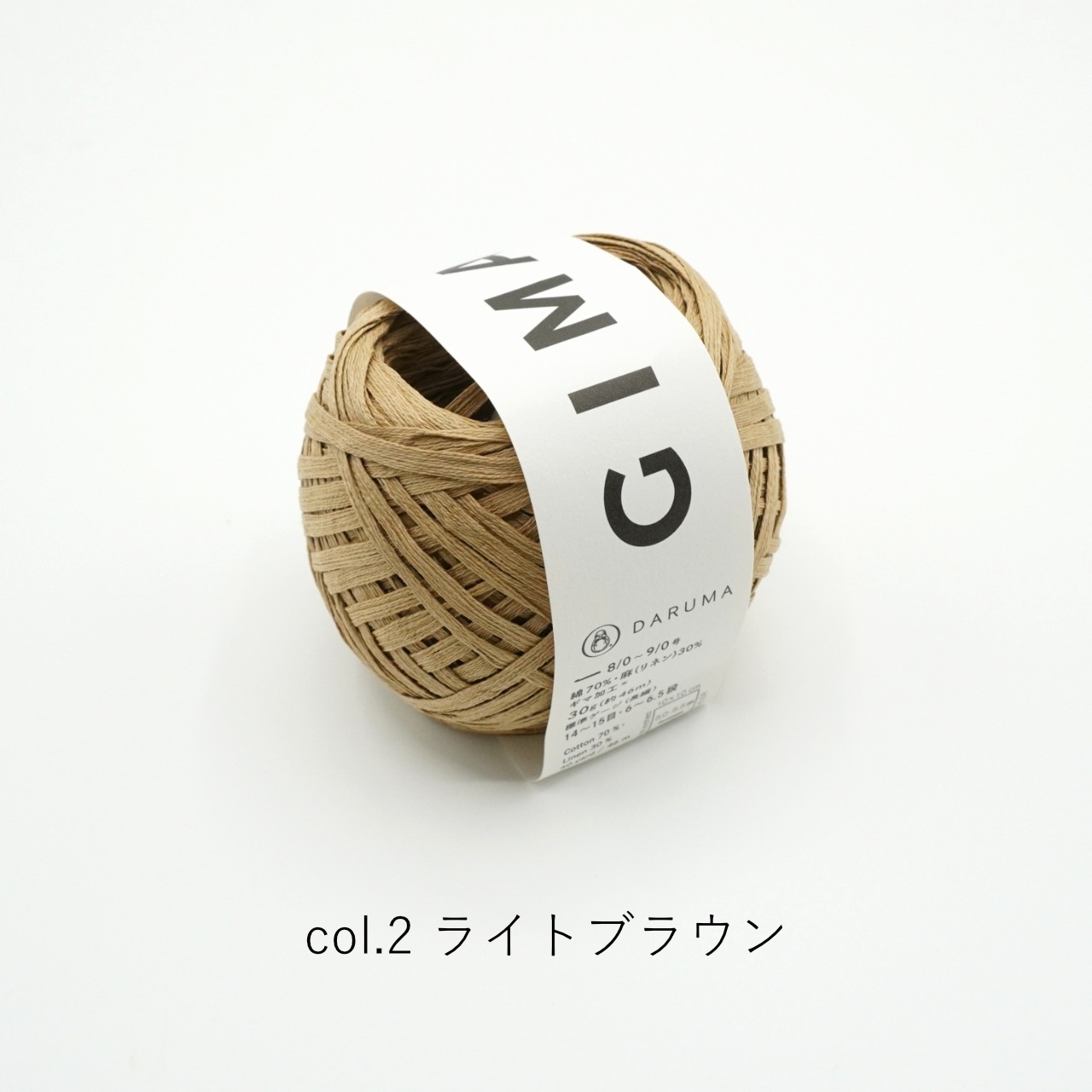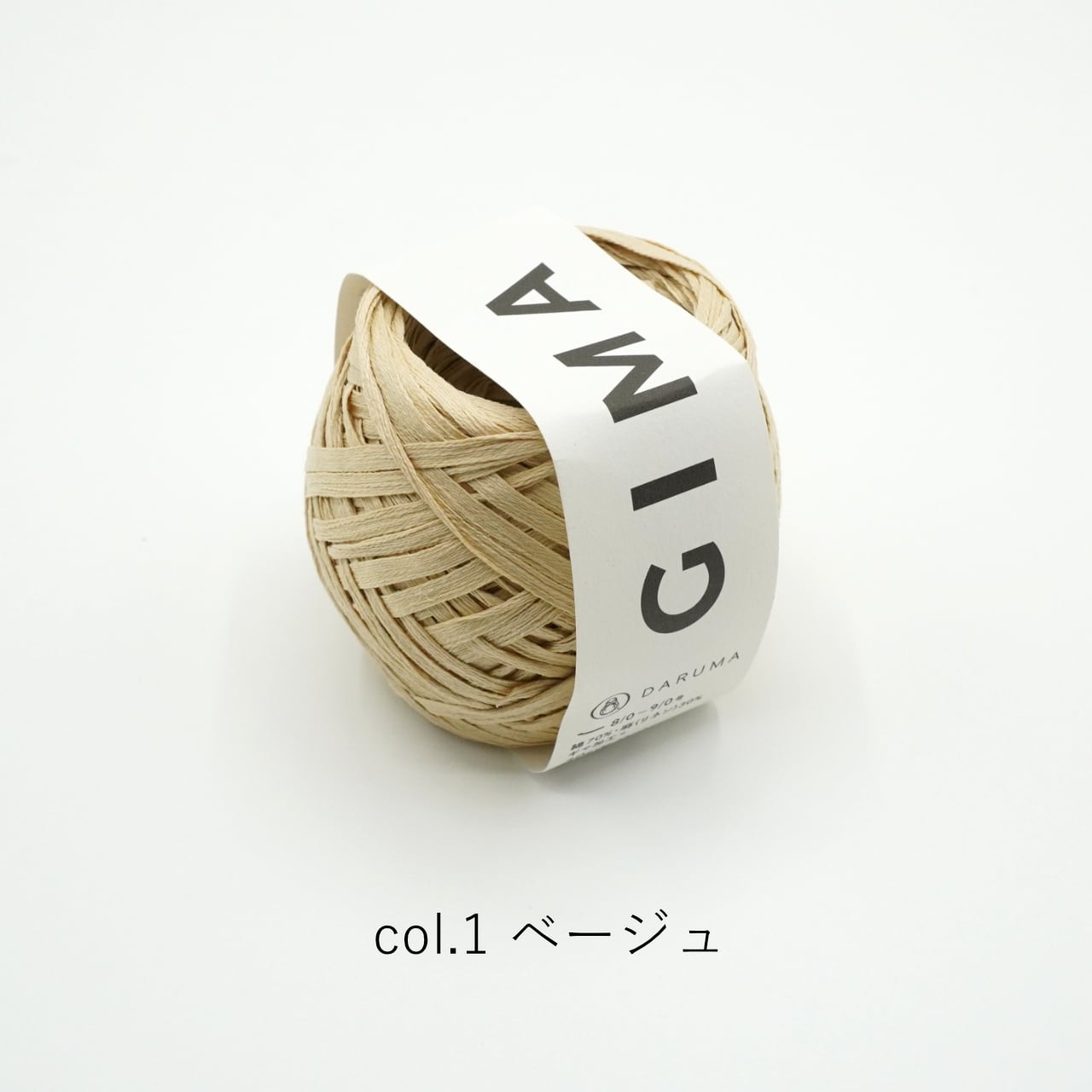 ギマとは、漢字で「擬麻」と書き、麻のような風合いに仕上げることをいいます。テープ状になっている糸の硬さや幅にこだわって作られており、しっかりとしながらも軽くなりますので、バッグや小物を作るのにオススメです。