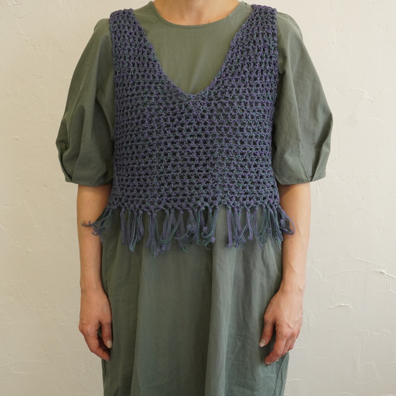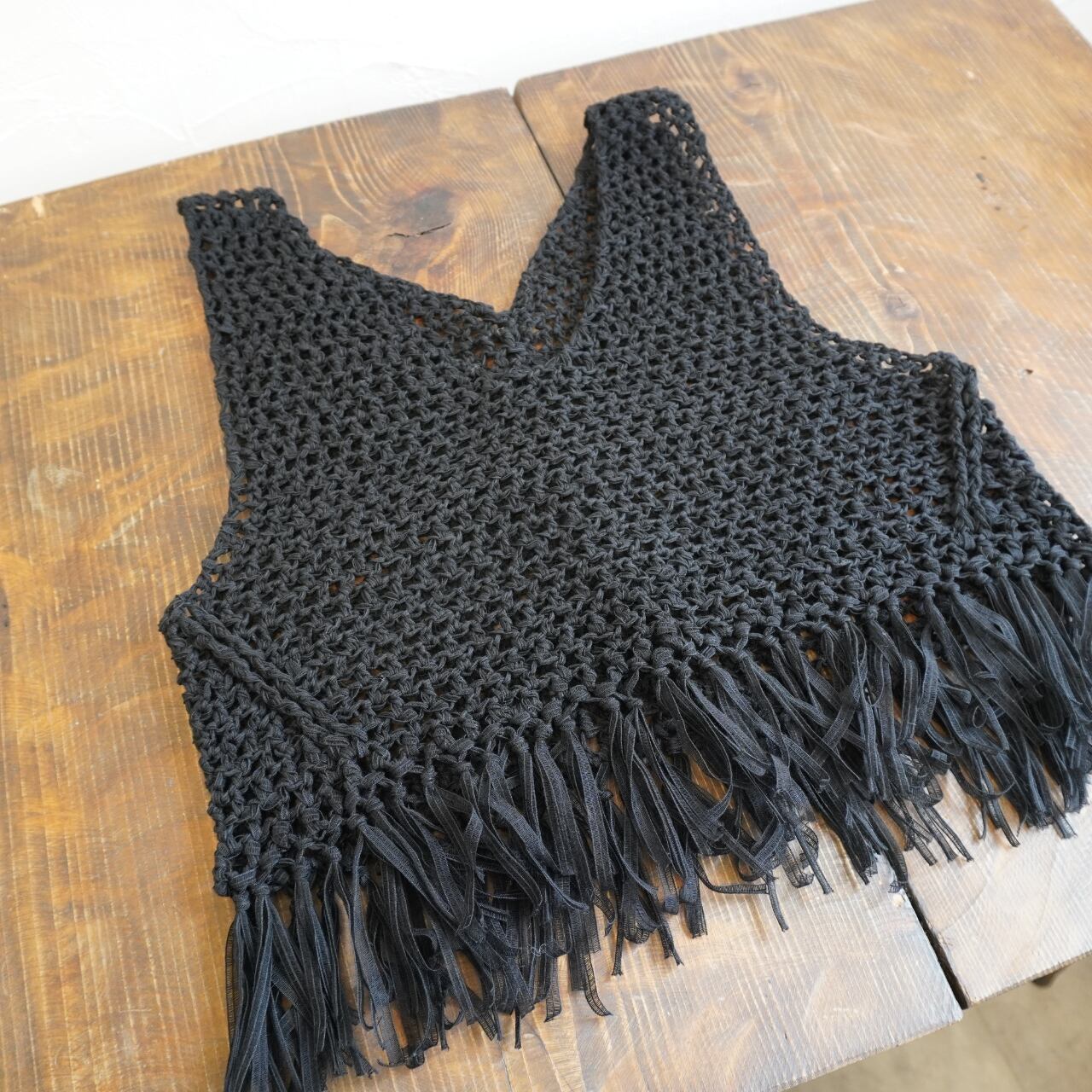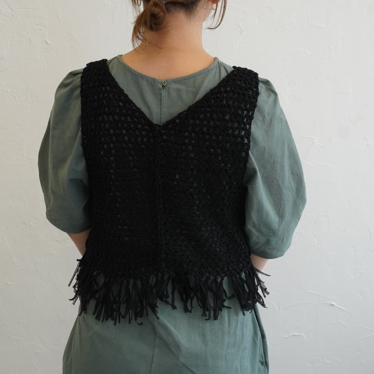 ラダーテープの糸の質感を活かしたフリンジがポイントのベスト。