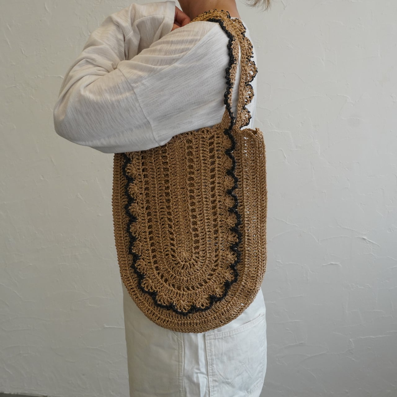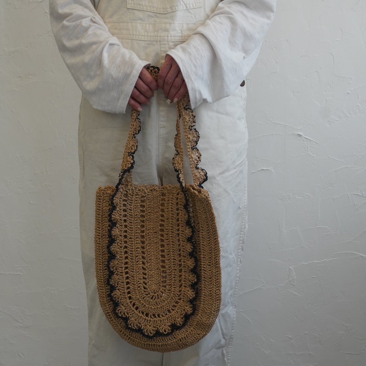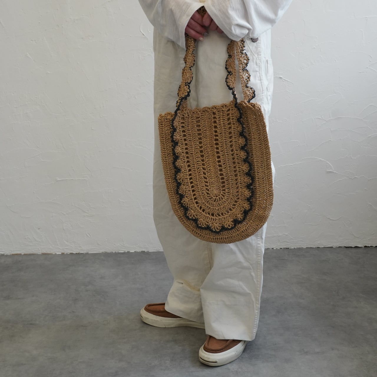持ち手からバッグ本体に編み付けられたフリルがポイントのバッグ。