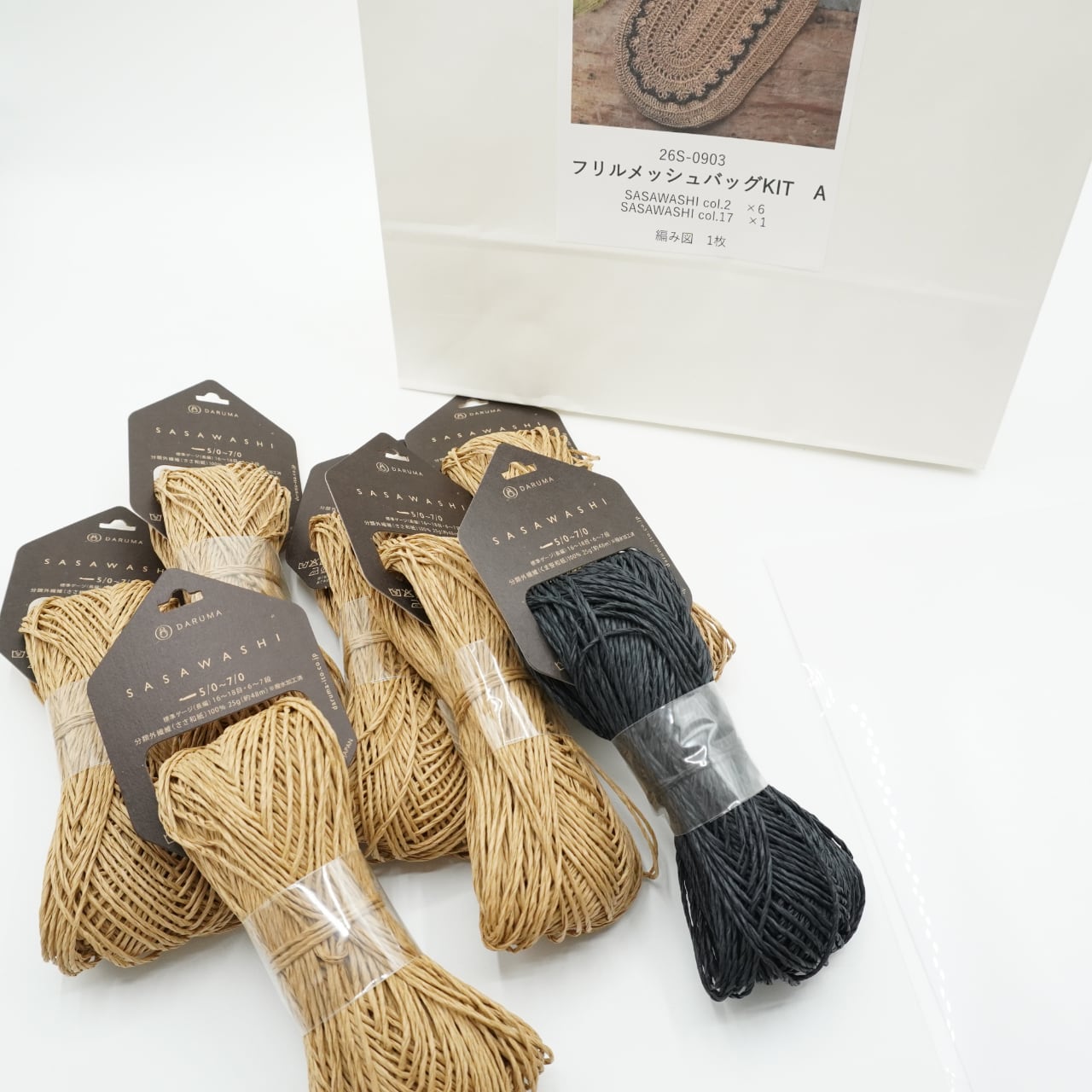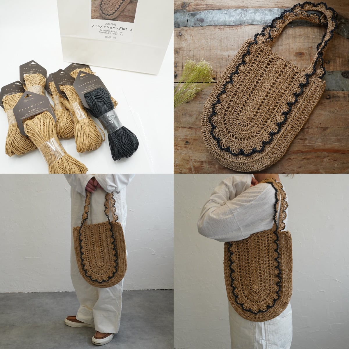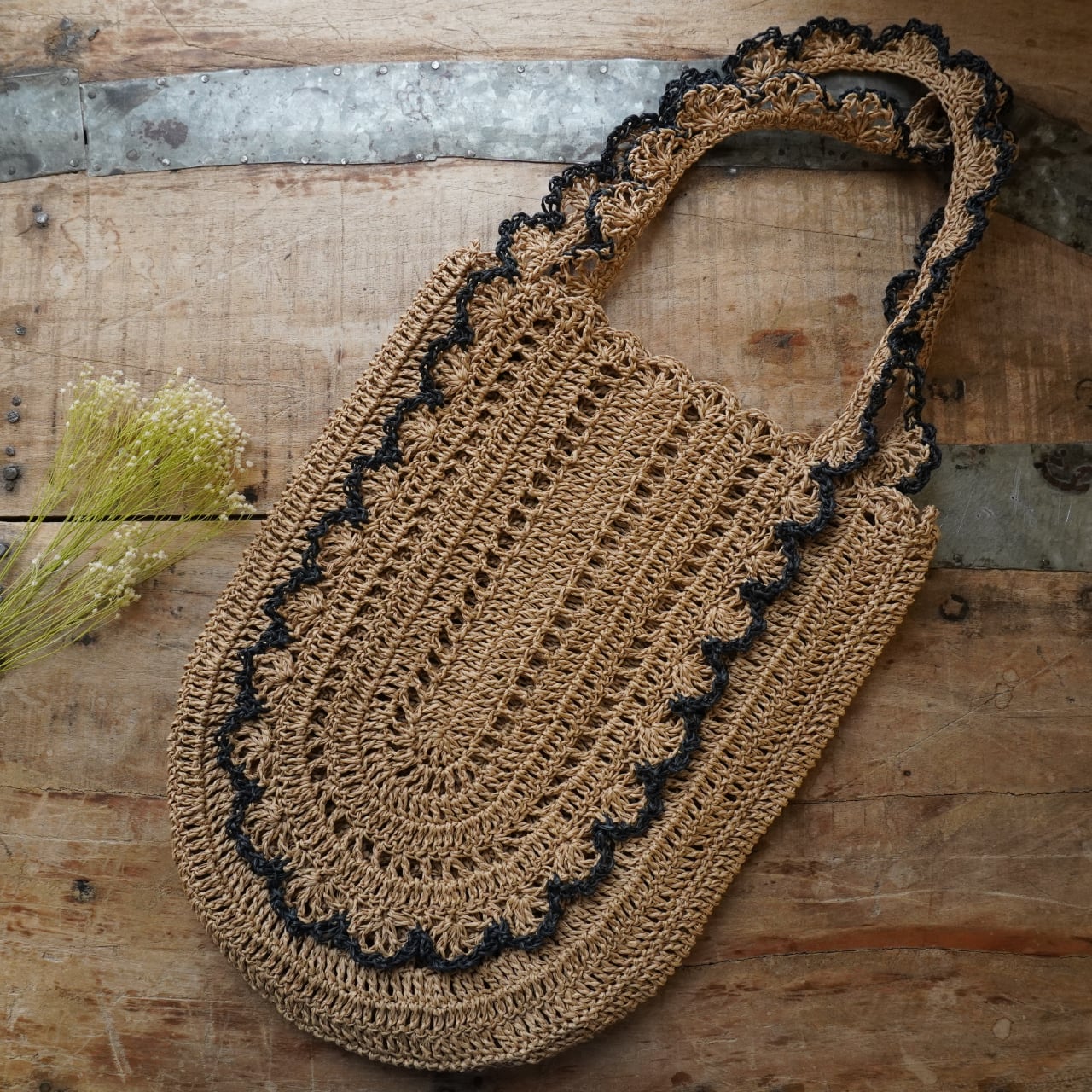持ち手からバッグ本体に編み付けられたフリルがポイントのバッグ。