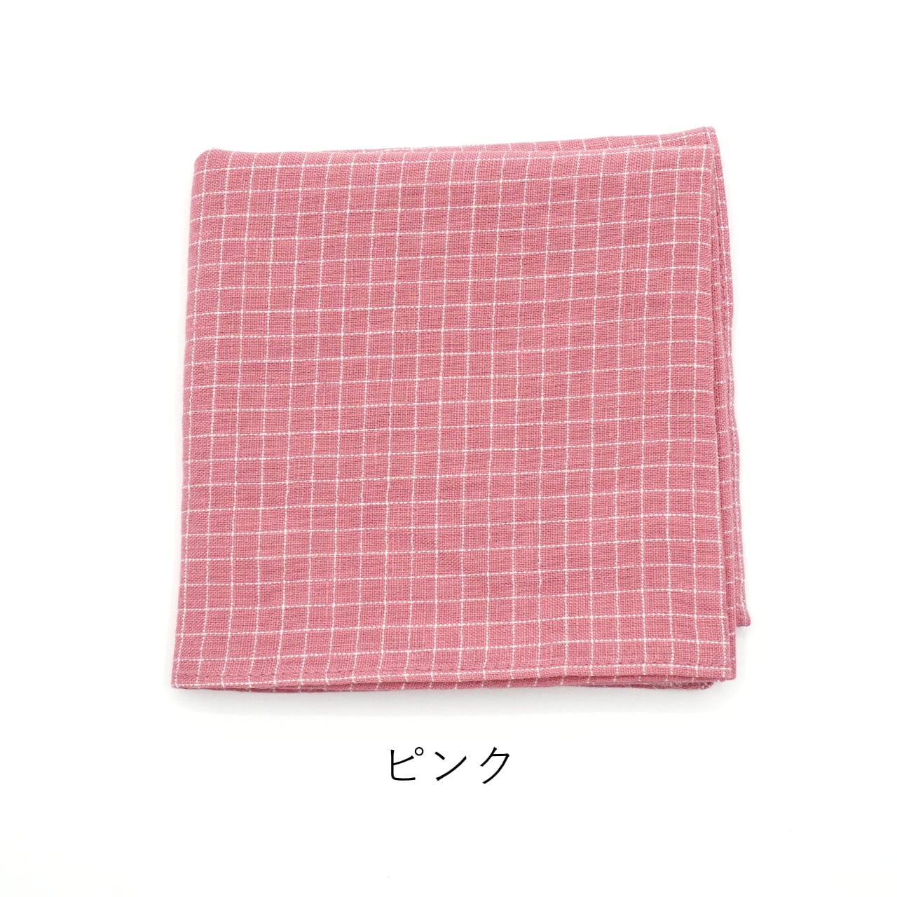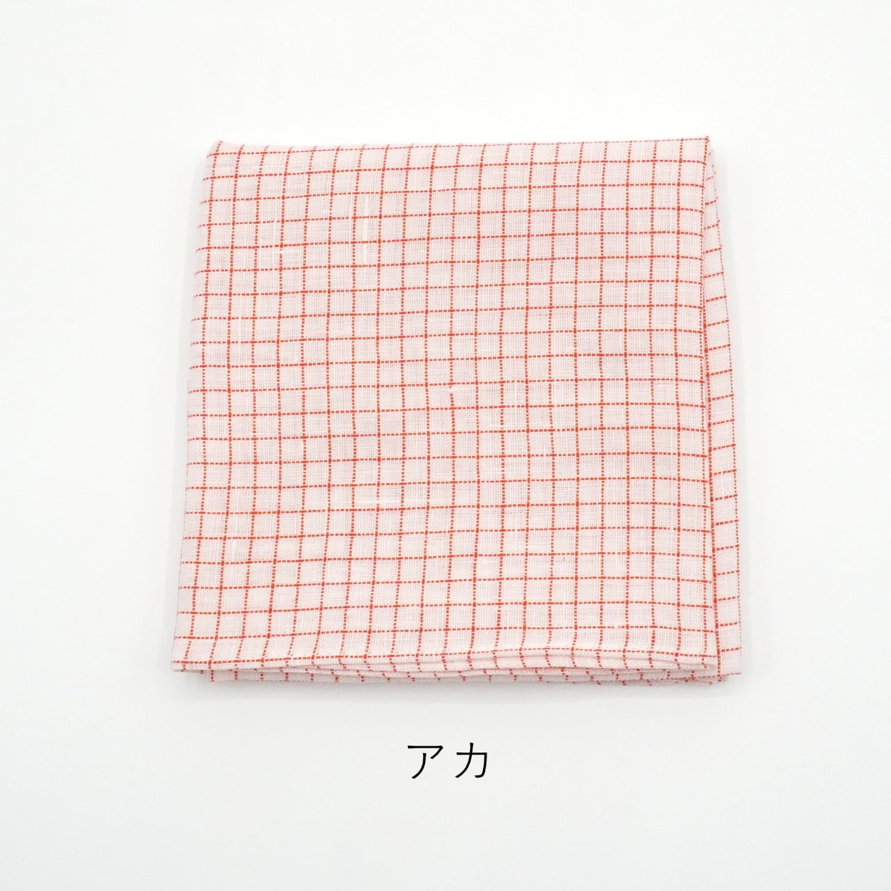 地色の部分は麻糸、チェック柄の線の部分はポリエステルの糸で織り上げたハンカチ。