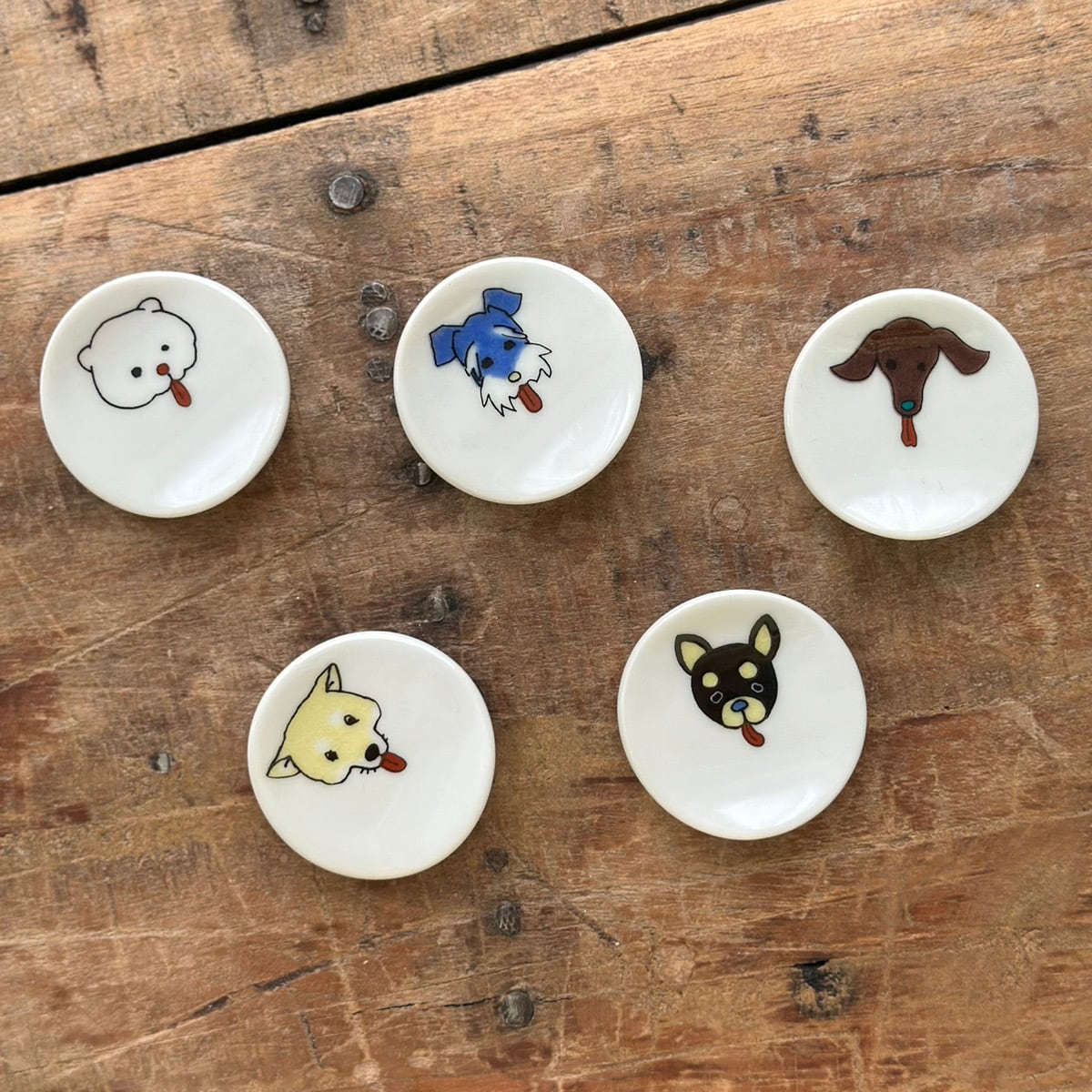 描かれているのは、柴犬、ポメラニアン、シュナウザー、チワワ、ミニチュアダックス。